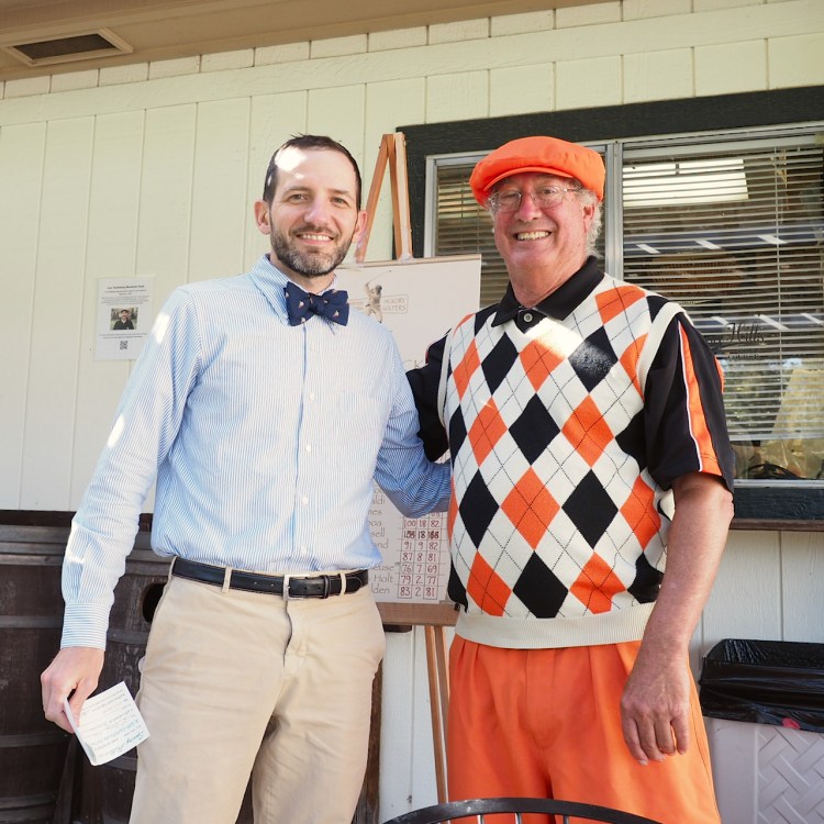 Well we did it !! The Apple City hickory tournament was a rousing success !! We had a total of 17 Players of which many were first time players in the Apple City. There were some pretty strong sticks and a few first timers with varying results. It was a beautiful day with the fog sweeping in and out. We couldn’t ask for more. Congratulations to the winners: 3rd place net , Charles McCullom (net 74) …. 2nd place Net, Steve Henneuse (net 69)…. 1st place net, Michael Scott (net 68)….. 1st place gross, Skip Perry (gross 76)….. closest to the pin, Skip Perry . The Food and Drink were great after the round, many thanks to Amy , Jacque and Bobby and all the staff at Spring Hills for hosting us with the mostest. Thank you all for attending and looking forward to seeing you on the links soon. Remember to follow our website for upcoming events!! The Fun Day at Pacific grove was attended by 8 die hard golfers and it was blowing a gale on the back nine. Jim Norris and Michael Scott had to drop out after nine, Jim because he had to work and Michael because of a grape allergy suffered the night before. A good time was had by the group who finished.